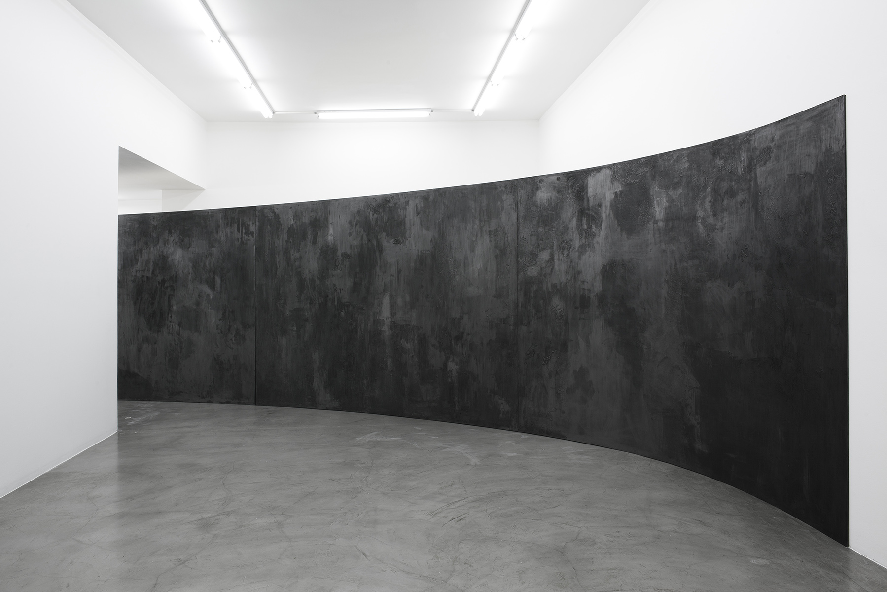 Un muro oscuro y lustroso, pardo violáceo